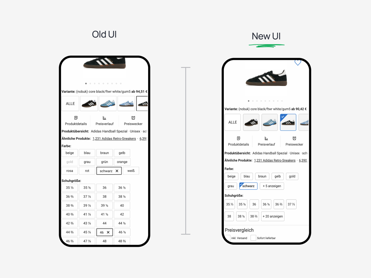 The solution is already live today, and further pages at idealo are adopting the same design - also with good results. Added to improving engagement and reducing bounce rate we have: