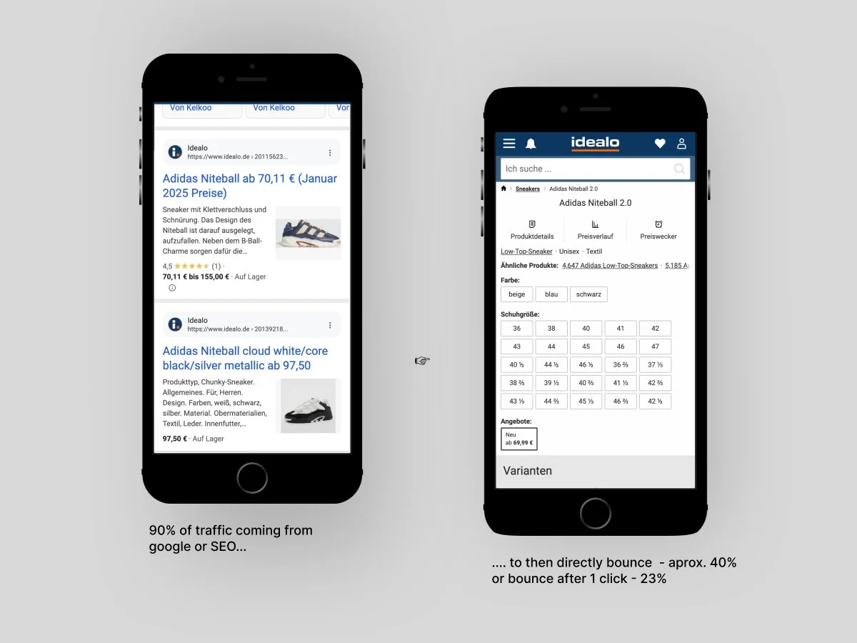 Idealo is a price comparison platform, and we have a huge influx of external traffic during sale events. My team was determined to positively impact black friday, we had 2 months, and limited backend personpower.